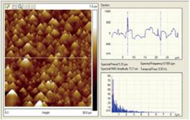 Atomic force microscopy (AFM) use a special small probe to measure certain interactions between the probe and the sample surface, such as tunneling current, atomic force, magnetic, electromagnetic near field, etc., and use one having a three-axis piezo on the sample surface to scan the sample surface. While scanning ,the vertical axis piezo is able to fine-tune the feedback circuit, so that interaction between the probe and the sample is maintained fixed during the scanning process. The distance between the probe tip and the surface is in a few to several hundred a ° (10-10m) , as long as the recording of the vertical distance, we are able to obtain an image map, these data can be used to show the sample surface characteristic. Most of AFM probes made from the silicon, the tip radius of curvature of about 10nm, is an important research tool for microscopic surface structure.