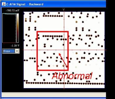 90um, Z > 7.5umOpen-Loop scanner: XY > 5um, Z > 1.5umSample size: X-45mm x Y-45mm x Z-18mmMotorized Z Axis stage: Z Travel:18mmResolution: <2um with standard 10x objective ▍Applications of AFM1. Material surface topographyData storage device surface topographyLED surface topography▍Applications of CAFM1.Failure localization (Higher resistance/Junction leakage/Gate oxide leakage)2.Identify Contact types (P+/N+/Poly contact)3.I/V curves measurementCase 1: Failure localization by CAFM,current map identify the abnormal polyCase 2 : Failure localization by CAFM">