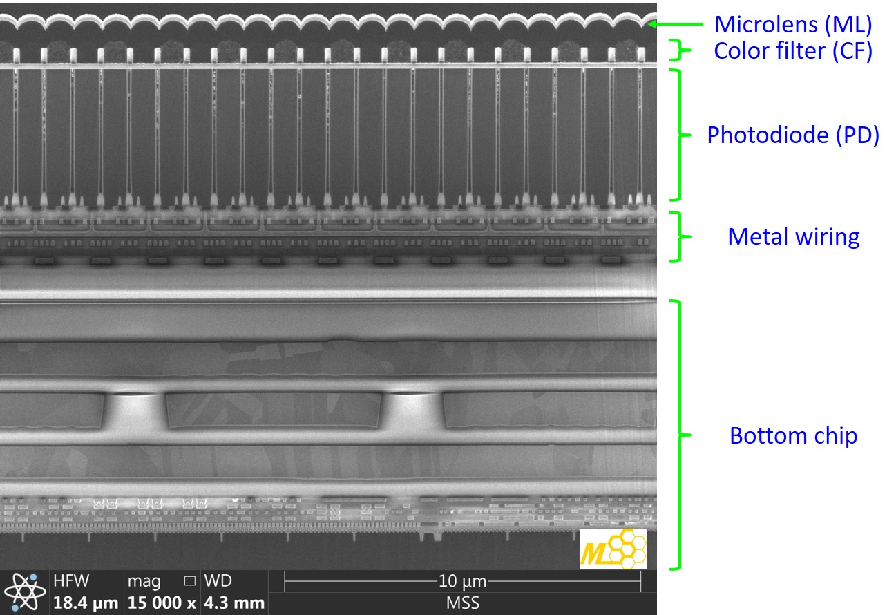 To understand the inner structures of the Samsung image sensor, cross-sectional SEM is utilized.