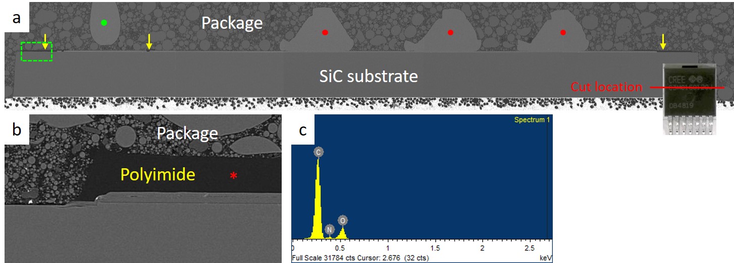 From the image, it clearly shows that there is one polyimide layer on part of the SiC MOSFET surface.