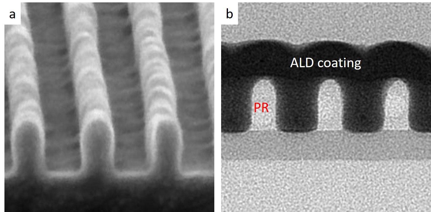 By comparing with these two images, obviously, the structures of photoresists stay the same after the low-temperature ALD coating.